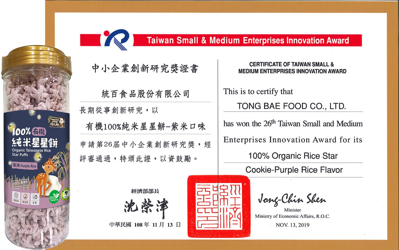 2022年銀髮友善食品頒獎典禮 【臺灣有機100%純米菓條-紫米口味】