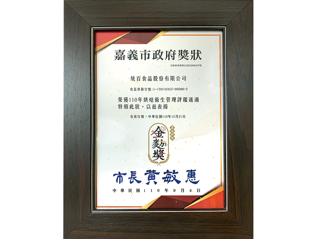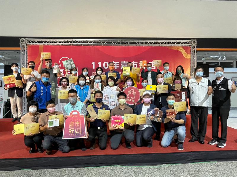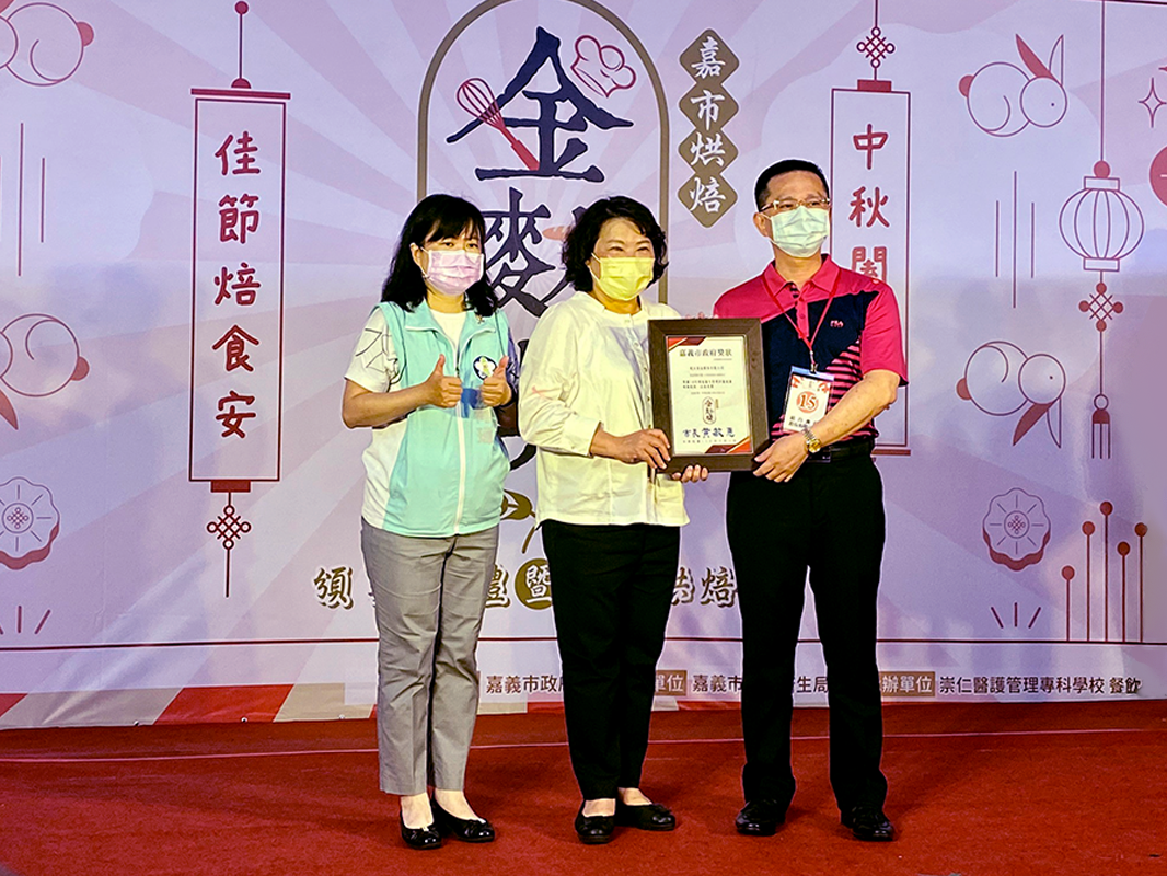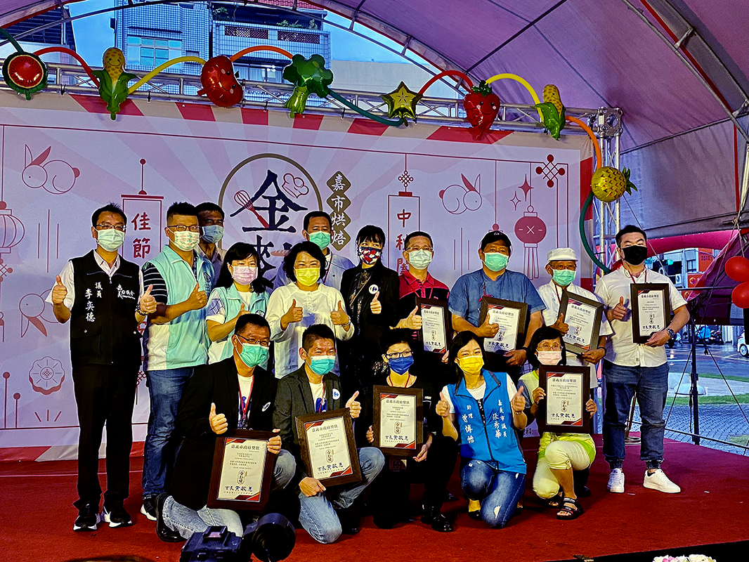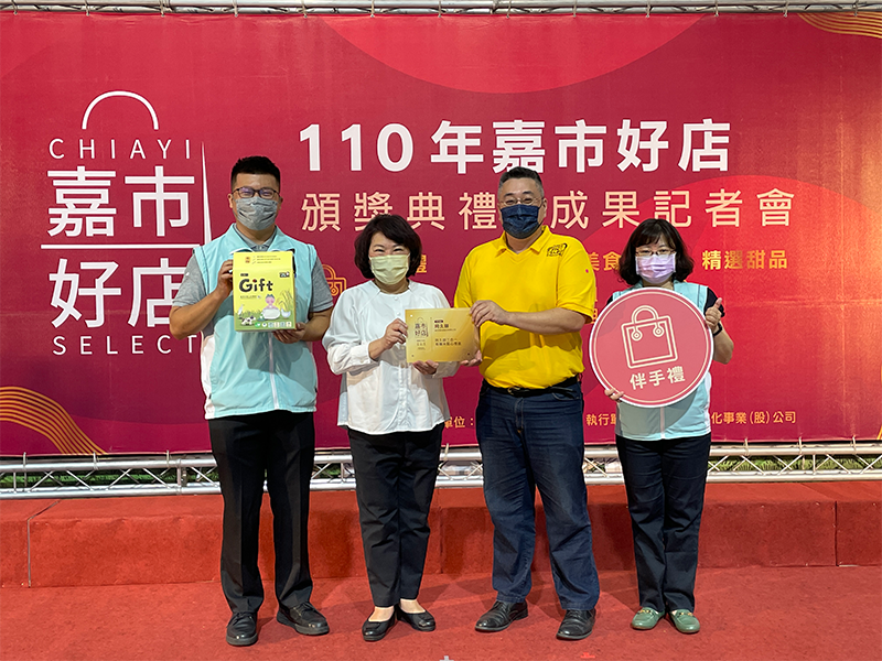 左至右:建設處 田長沛處長、嘉義市 黃敏惠市長 、統百食品 李侑燃業務主任、衛生局 廖育瑋代理局長