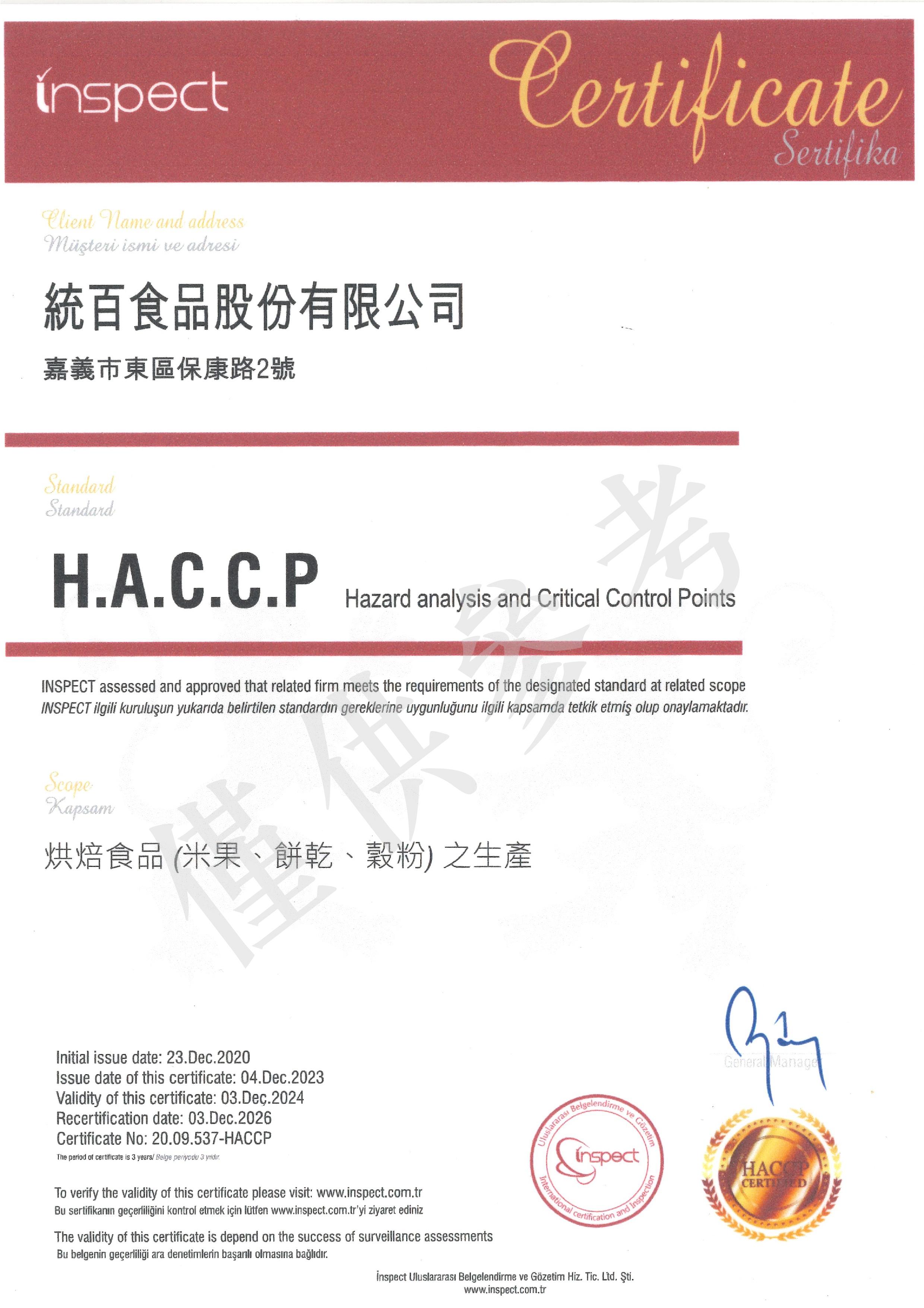 通過 H.A.C.C.P 驗證