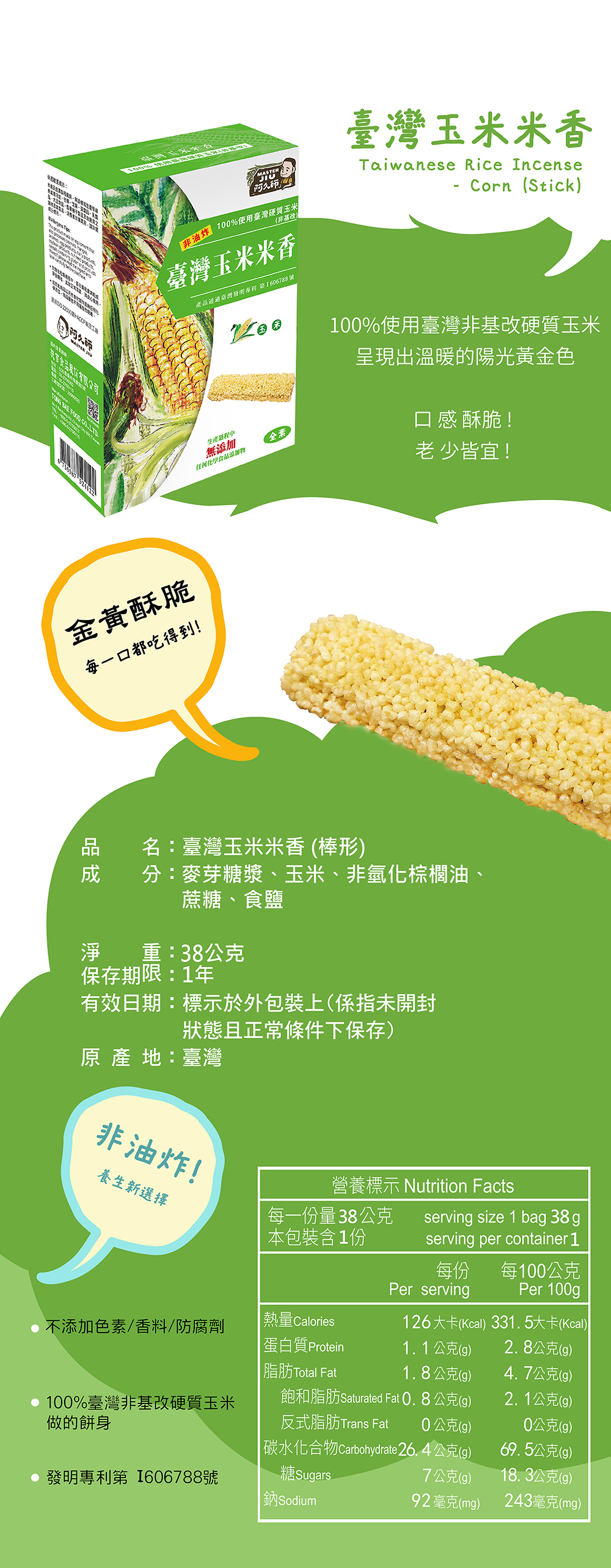 品名: 臺灣玉米米香(棒形)