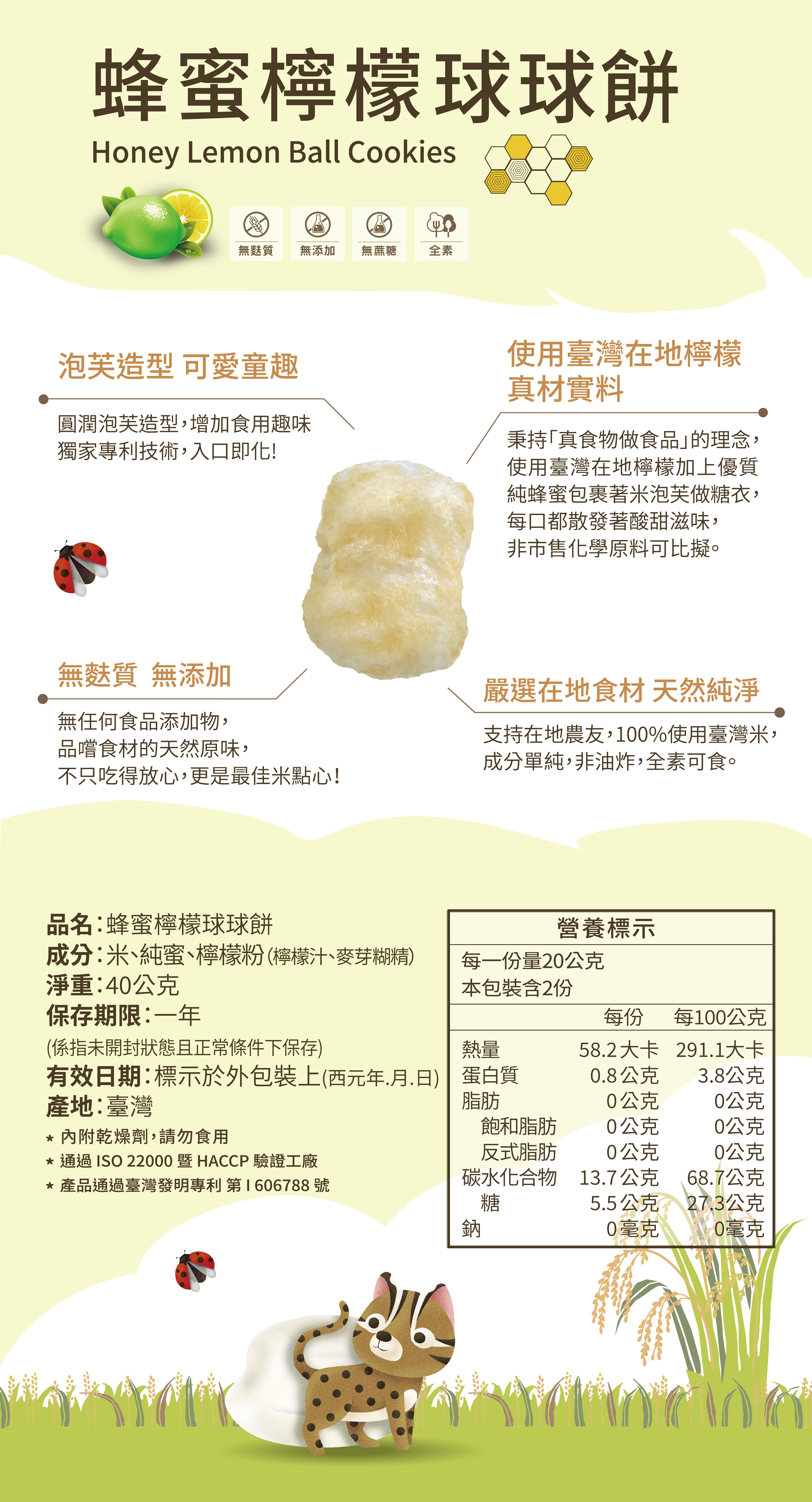 成分:米,純蜜,檸檬粉(檸檬汁,麥芽糊精)
