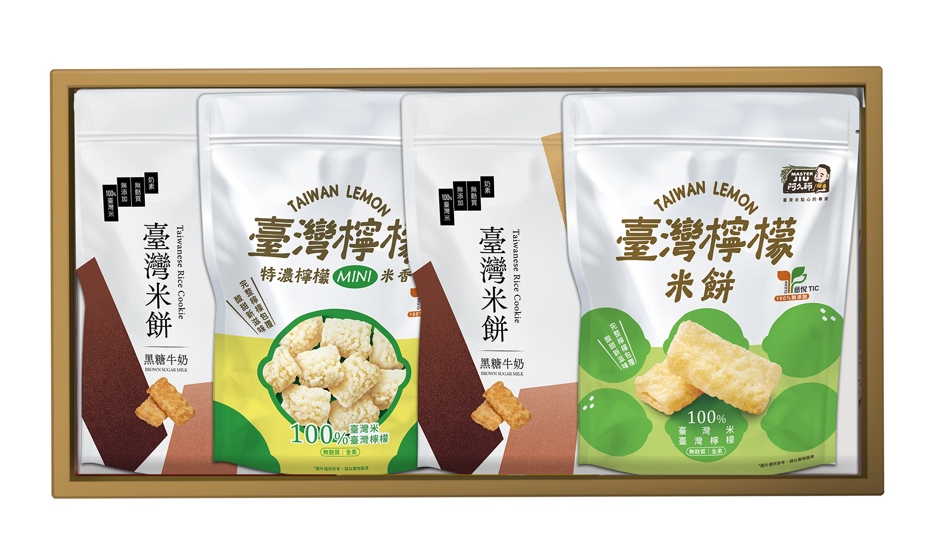 (臺灣檸檬米餅X1袋、特濃檸檬MINI米香X1袋、臺灣米餅-黑糖牛奶X2袋)