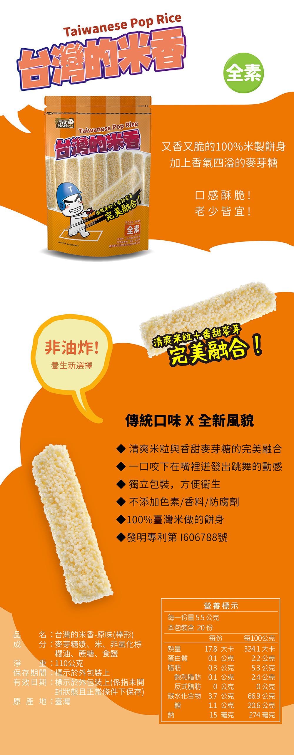 品名:臺灣的米香-原味(棒形)